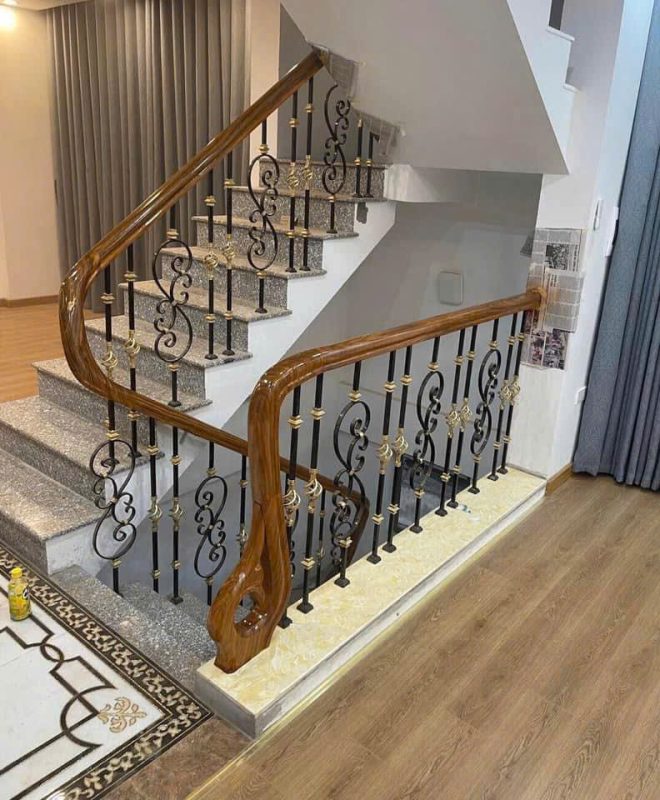 - Vật liệu: Phần lan can thường kết hợp với tay vịn bằng gỗ hoặc inox, vừa chắc chắn vừa hài hòa về thẩm mỹ.