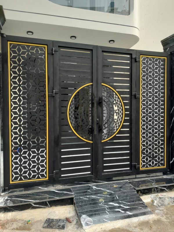 Phụ kiện cổng mỹ thuật bao gồm nhiều chi tiết nhỏ nhưng có vai trò lớn trong cả kết cấu và thẩm mỹ. Hoa văn thường được uốn thủ công hoặc đúc nổi, với họa tiết mềm mại như hoa lá, đầu rồng, xoắn ốc hoặc hình khối hiện đại. Màu sắc cũng rất đa dạng từ đen nhám sang trọng, đồng giả cổ đến sơn nhũ vàng, tất cả đều được xử lý bằng sơn tĩnh điện cao cấp để giữ màu lâu, chống bong tróc dưới tác động thời tiết.